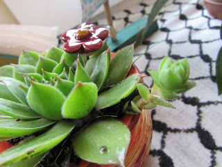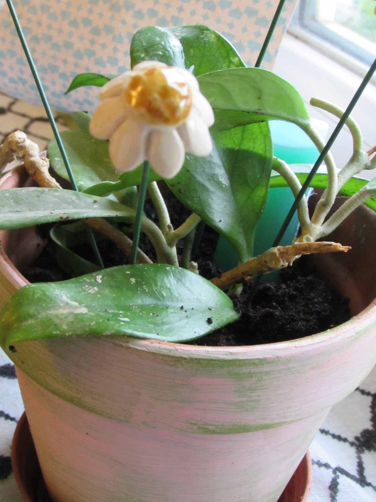 A viaszvirág is szuperül illeszkedik egy bohém lakásba, az is futtatható, lógatható. Állítólag virágzik, engem sok év alatt egyszer sem tisztelt meg ezzel, úgyhogy vettem neki kerámiavirágokat. Szóval az is egy megoldás. És a kövirózsa mellett is jól mutat.