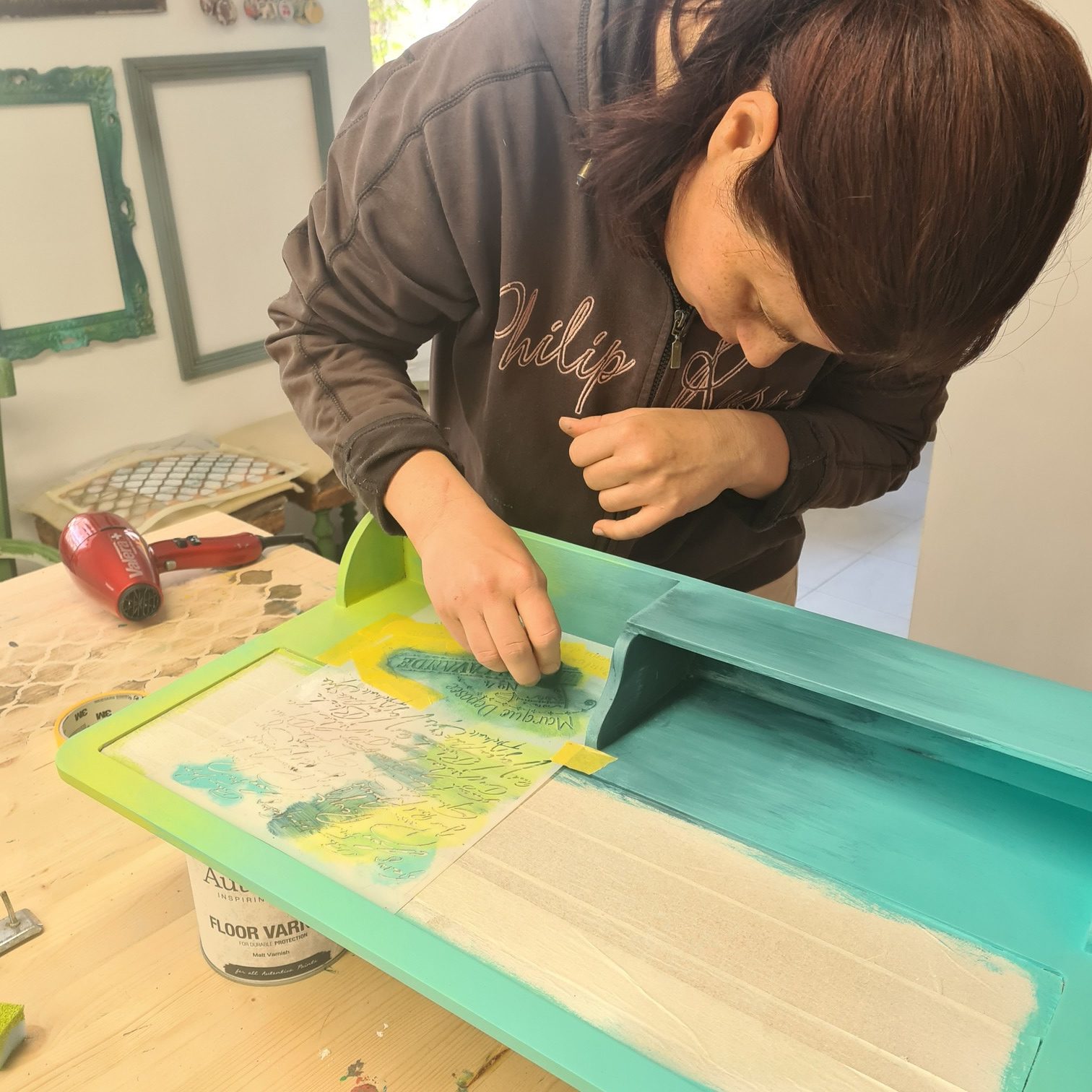 Az egyéni workshopon többféle technikát van lehetőséged kipróbálni, minden kérdésedre akár gyakorlati választ is kaphatsz! Ha bonyolultabb bútorod van, szívesen besegítek a munkába, illetve az ötletelési szakaszba is: melyik bútort hogyan, milyen stílusban érdemes festeni, mi illik hozzá. Tudok sok képet, ötletet mutatni, illetve különleges technikákat is javaslok sokszor.